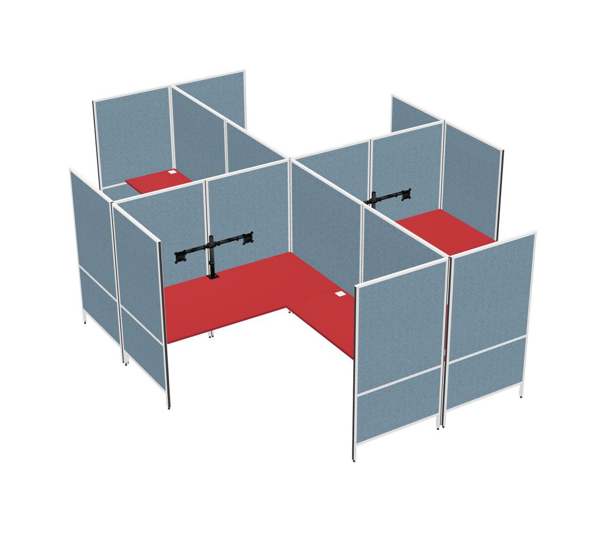 Prism Red Modern Modular Quad L-Shaped Panel System + Monitor Arm (double Arms)