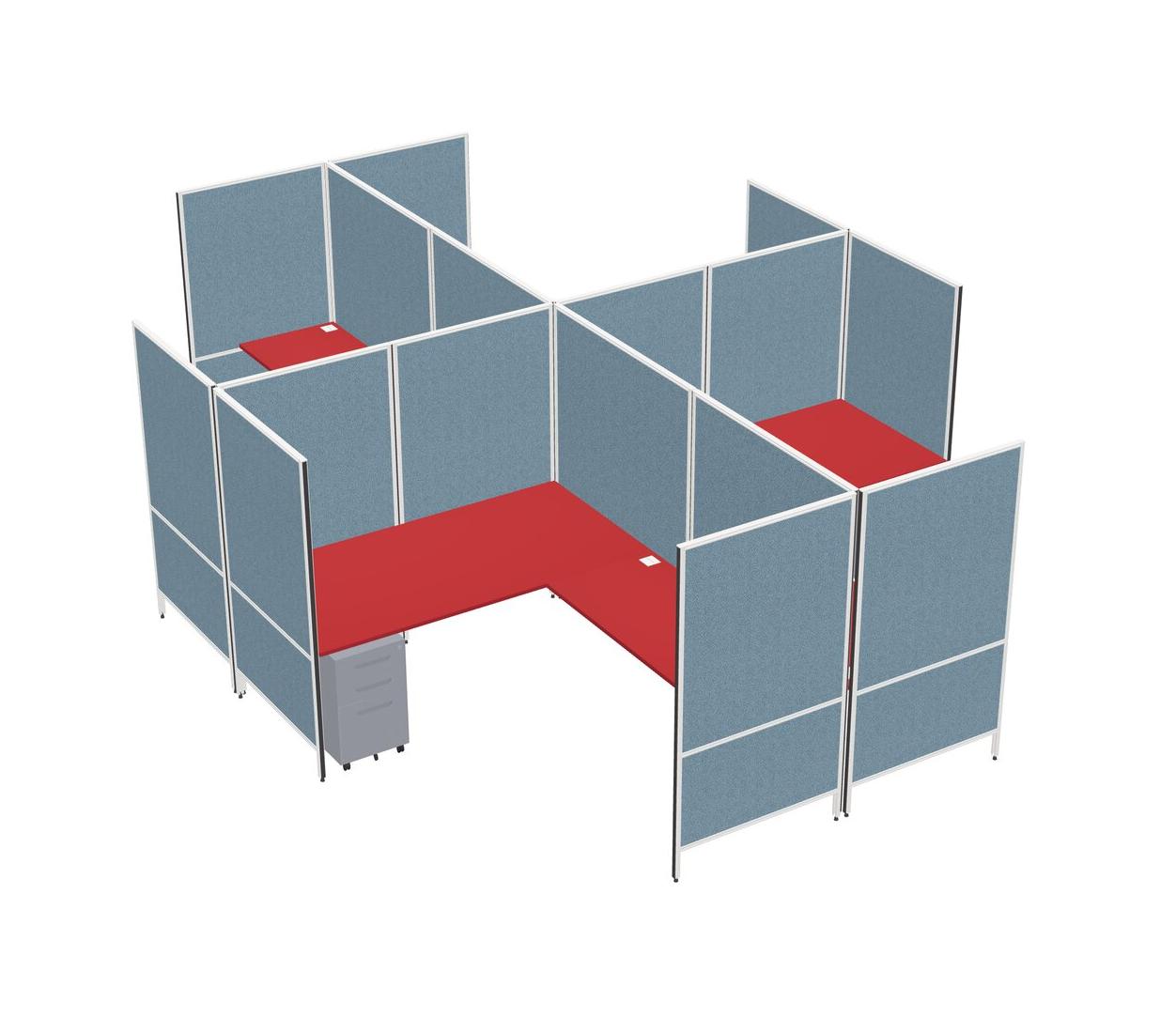 Prism Red Modern Modular Quad L-Shaped Panel System + Metal Mobile Drawers