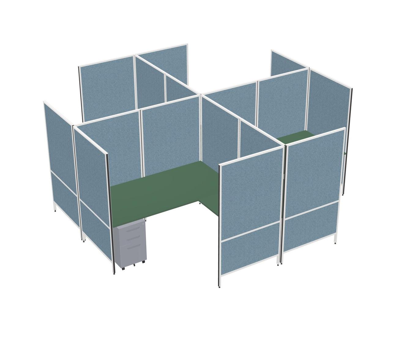 Green Modern Modular Quad L-Shaped Panel System + Metal Mobile Drawers