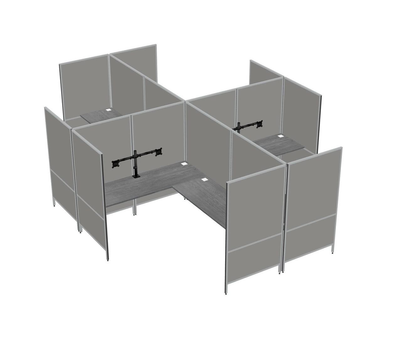 Grey Modern Modular Quad L-Shaped Panel System + Monitor Arm (double Arms)