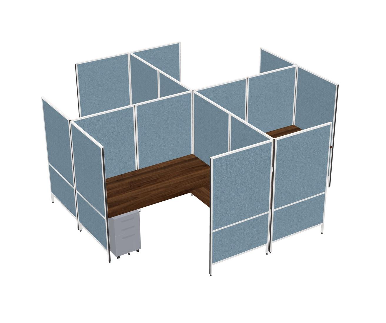 Columbia Walnut Modern Modular Quad L-Shaped Panel System + Metal Mobile Drawers