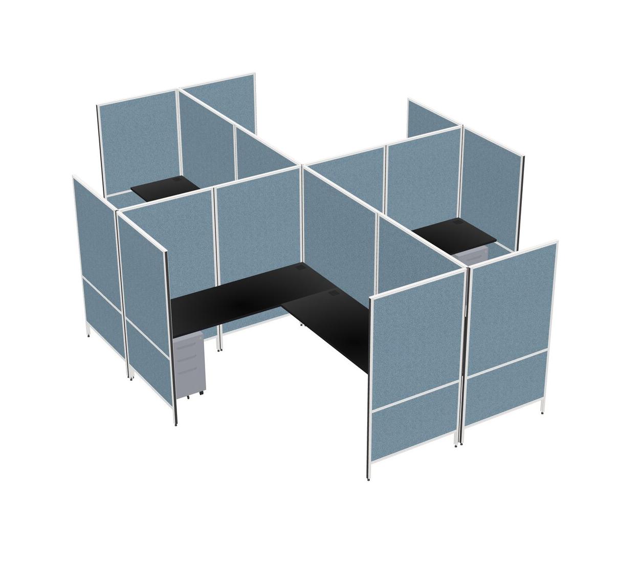 Black Modern Modular Quad L-Shaped Panel System + Metal Mobile Drawers