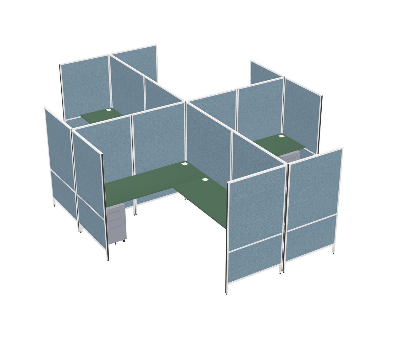 Green Modern Modular Quad L-Shaped Panel System + Metal Mobile Drawers