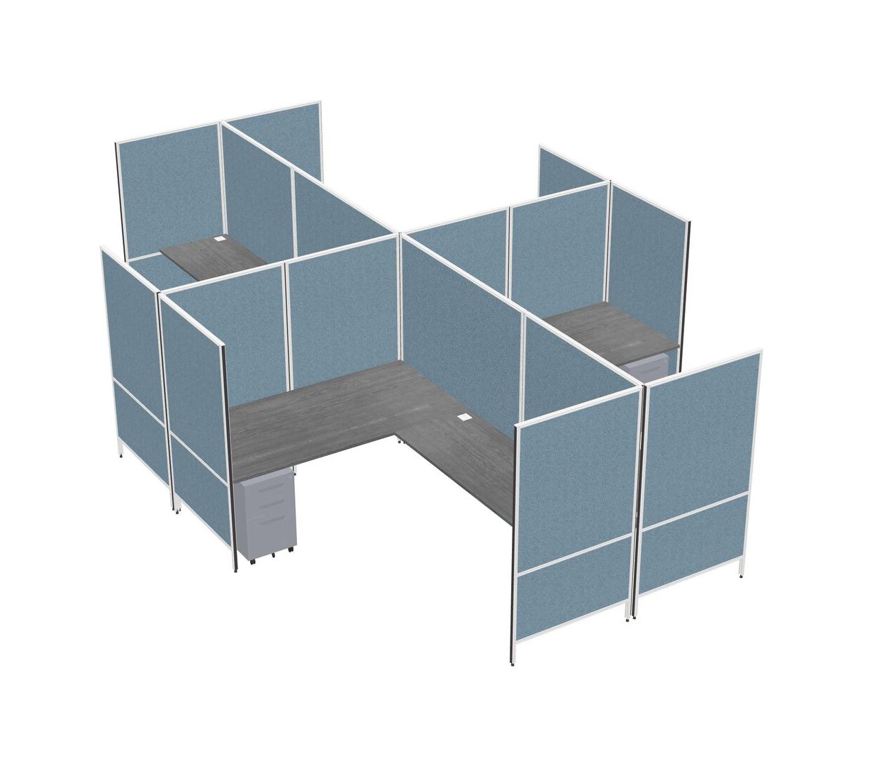 Grey Modern Modular Quad L-Shaped Panel System + Metal Mobile Drawers