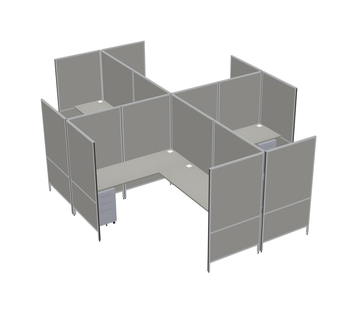 Grey Shadows Modern Modular Quad L-Shaped Panel System + Metal Mobile Drawers