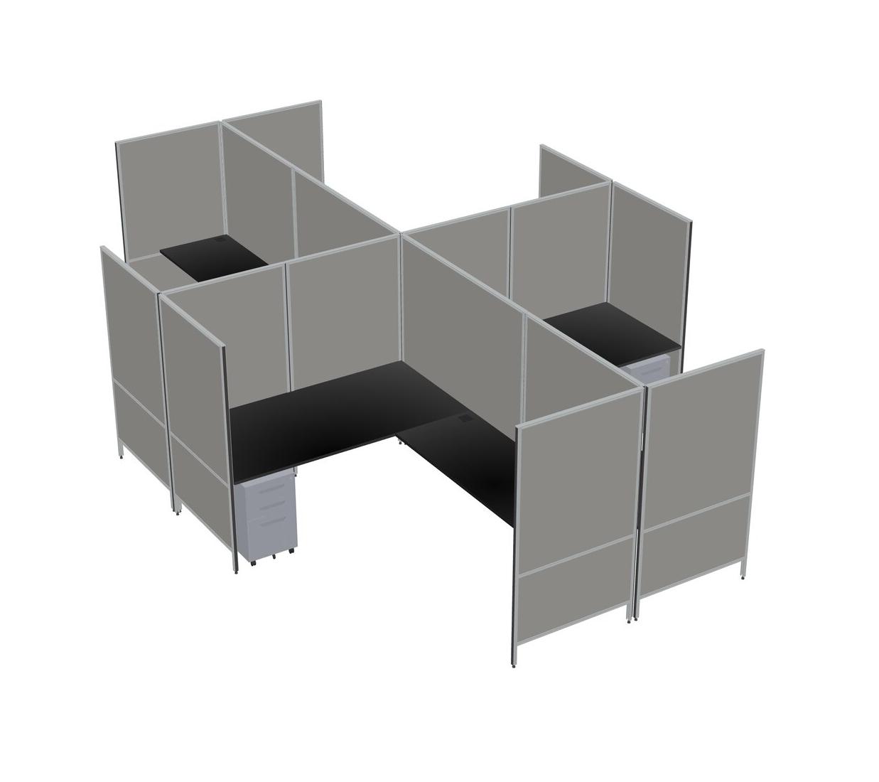 Black Modern Modular Quad L-Shaped Panel System + Metal Mobile Drawers
