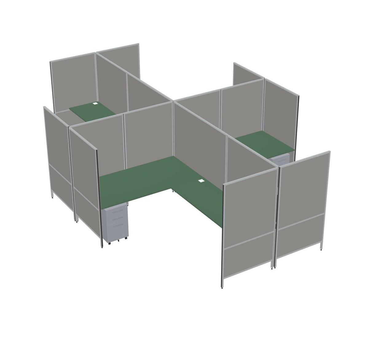 Green Modern Modular Quad L-Shaped Panel System + Metal Mobile Drawers
