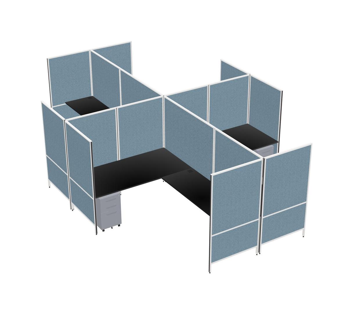 Black Modern Modular Quad L-Shaped Panel System + Metal Mobile Drawers