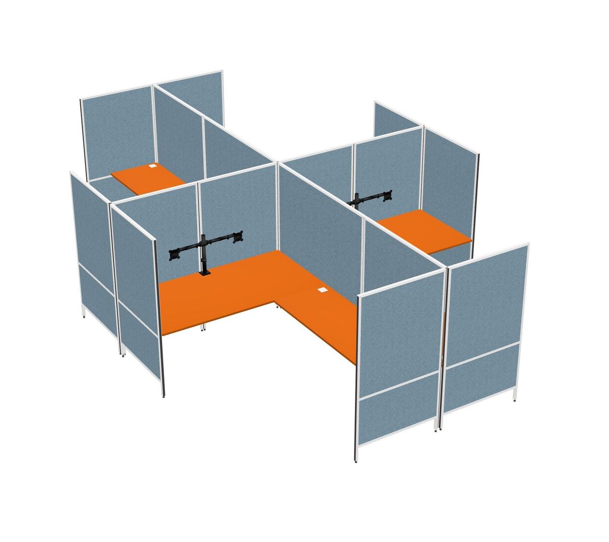 Orange Modern Modular Quad L-Shaped Panel System + Monitor Arm (double Arms)