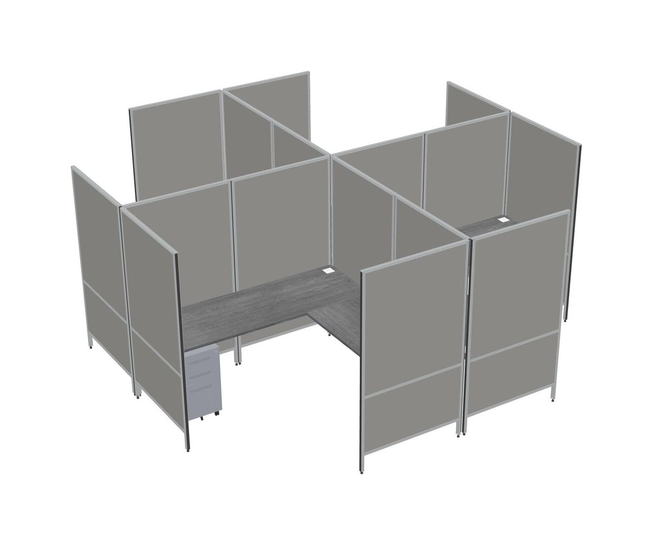 Grey Modern Modular Quad L-Shaped Panel System + Metal Mobile Drawers