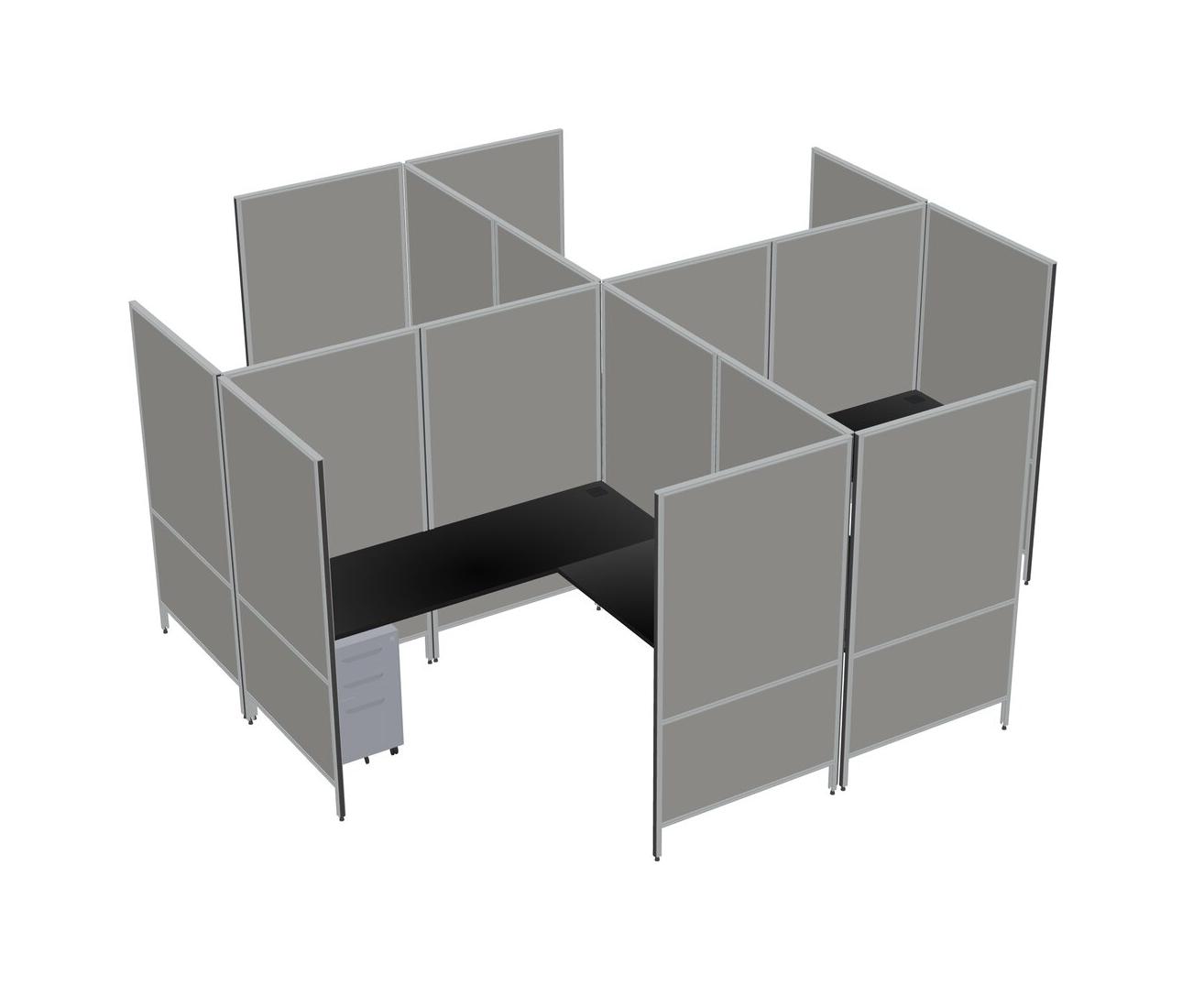 Black Modern Modular Quad L-Shaped Panel System + Metal Mobile Drawers