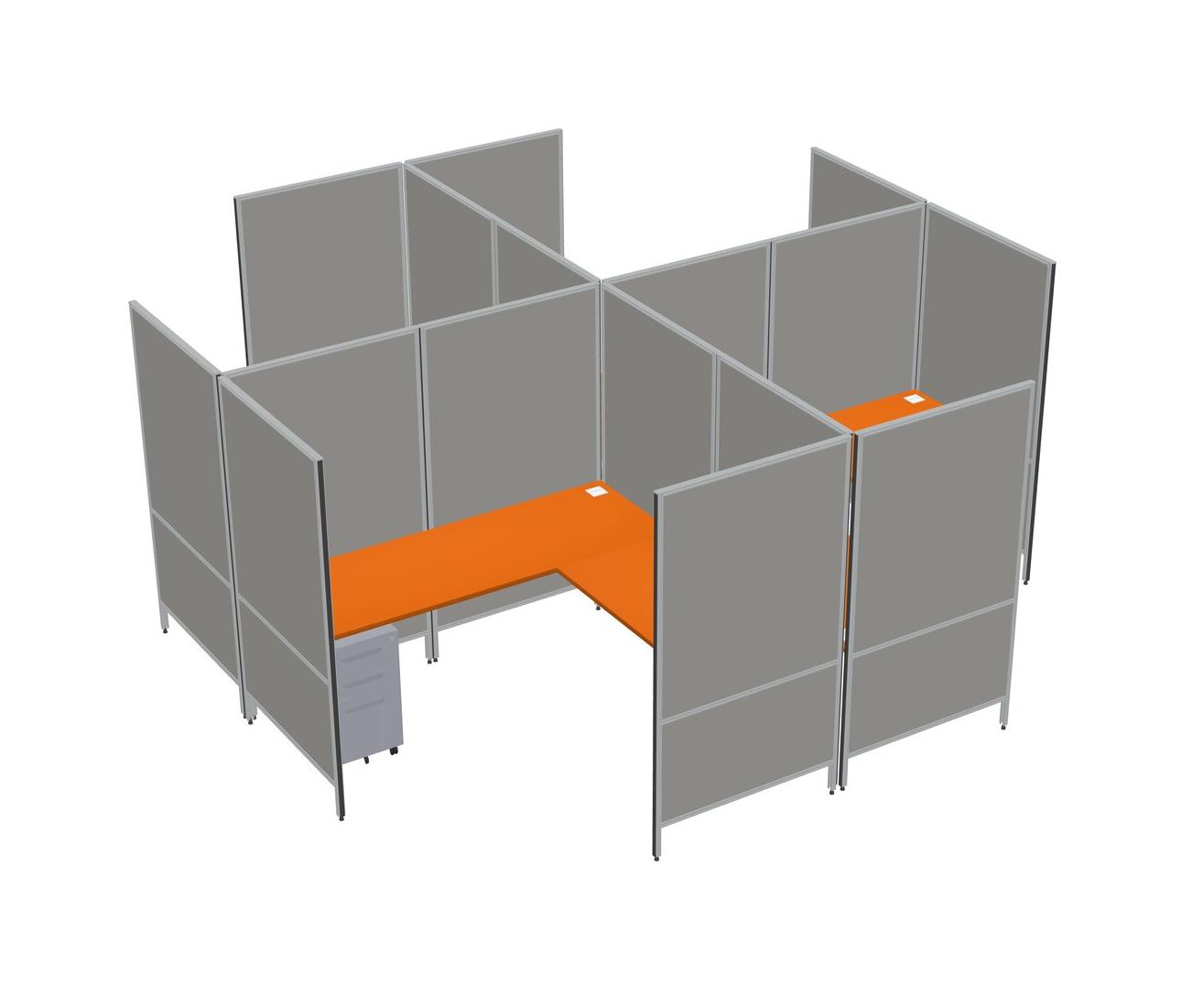 Orange Modern Modular Quad L-Shaped Panel System + Metal Mobile Drawers