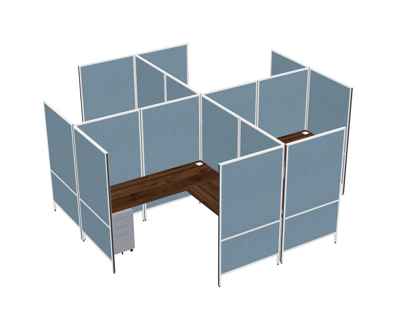 Columbia Walnut Modern Modular Quad L-Shaped Panel System + Metal Mobile Drawers