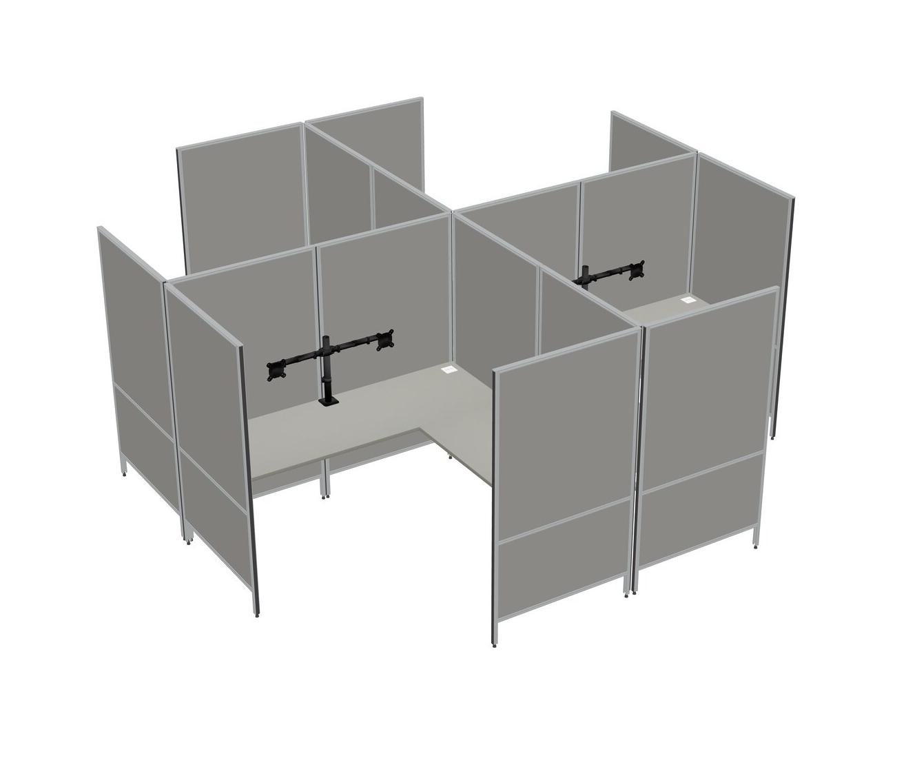 Grey Shadows Modern Modular Quad L-Shaped Panel System + Monitor Arm (double Arms)