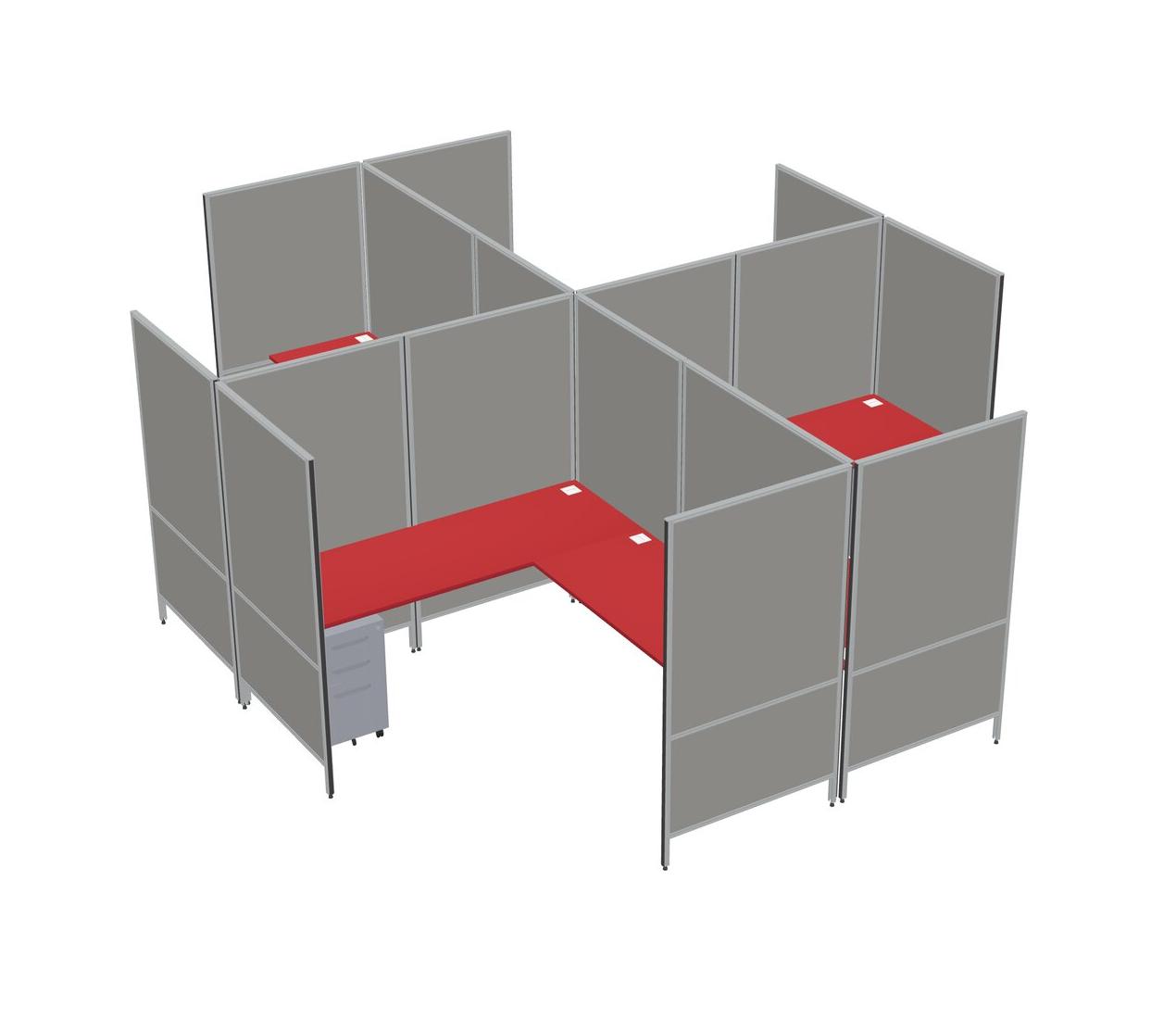Prism Red Modern Modular Quad L-Shaped Panel System + Metal Mobile Drawers