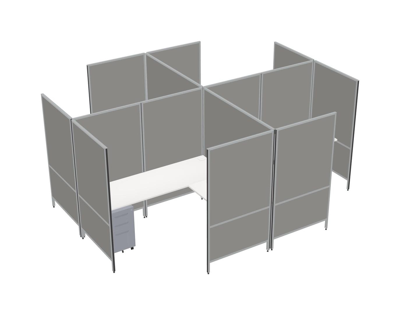 White Modern Modular Quad L-Shaped Panel System + Metal Mobile Drawers