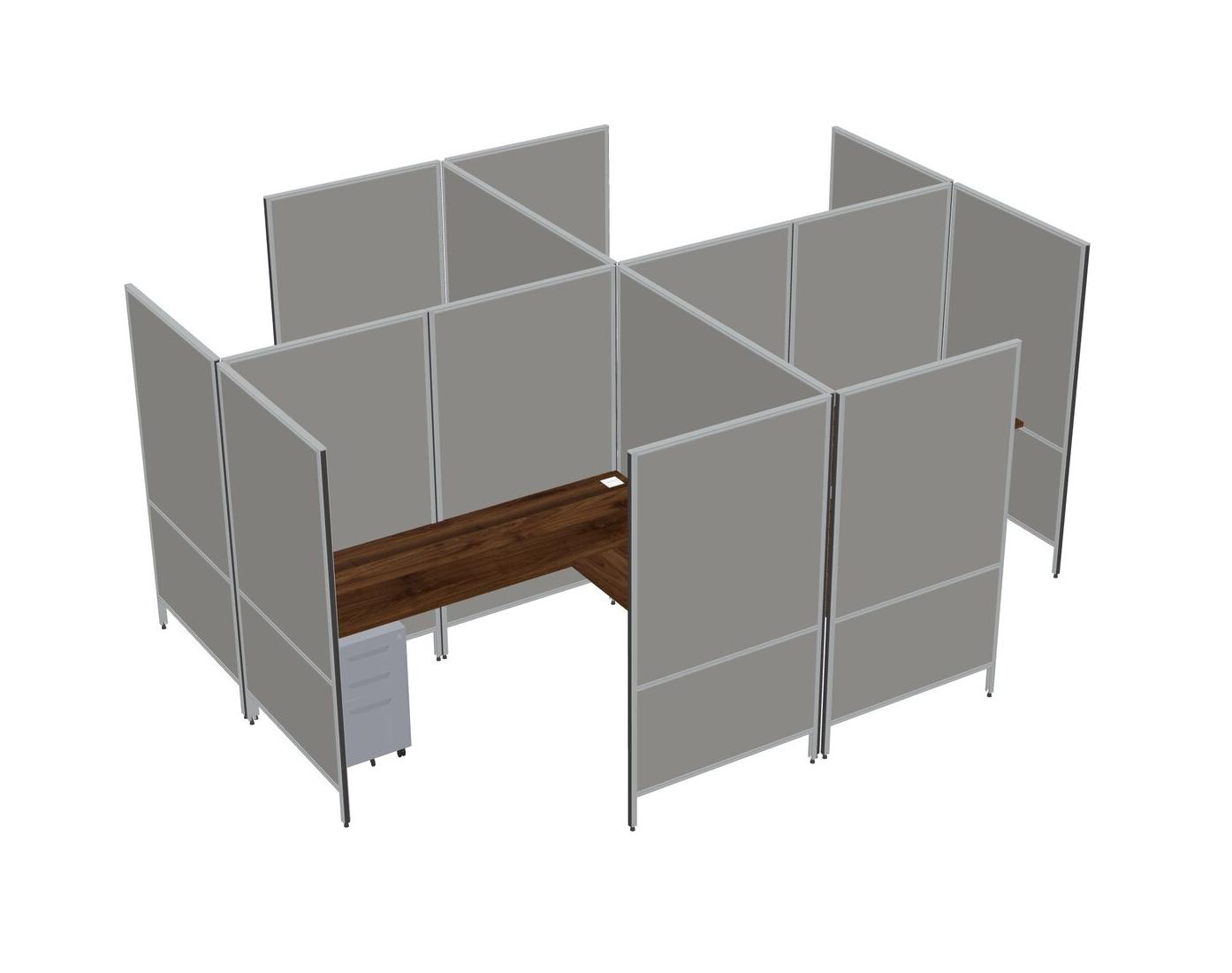 Columbia Walnut Modern Modular Quad L-Shaped Panel System + Metal Mobile Drawers