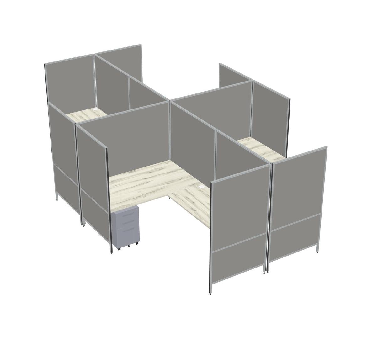 Heinne Holz Modern Modular Quad L-Shaped Panel System + Metal Mobile Drawers
