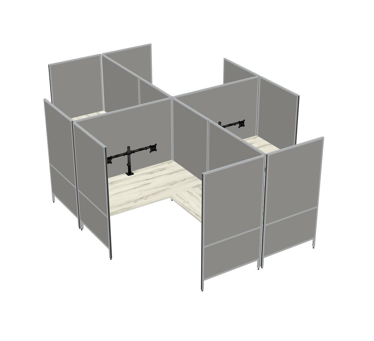 Heinne Holz Modern Modular Quad L-Shaped Panel System + Monitor Arm (double Arms)