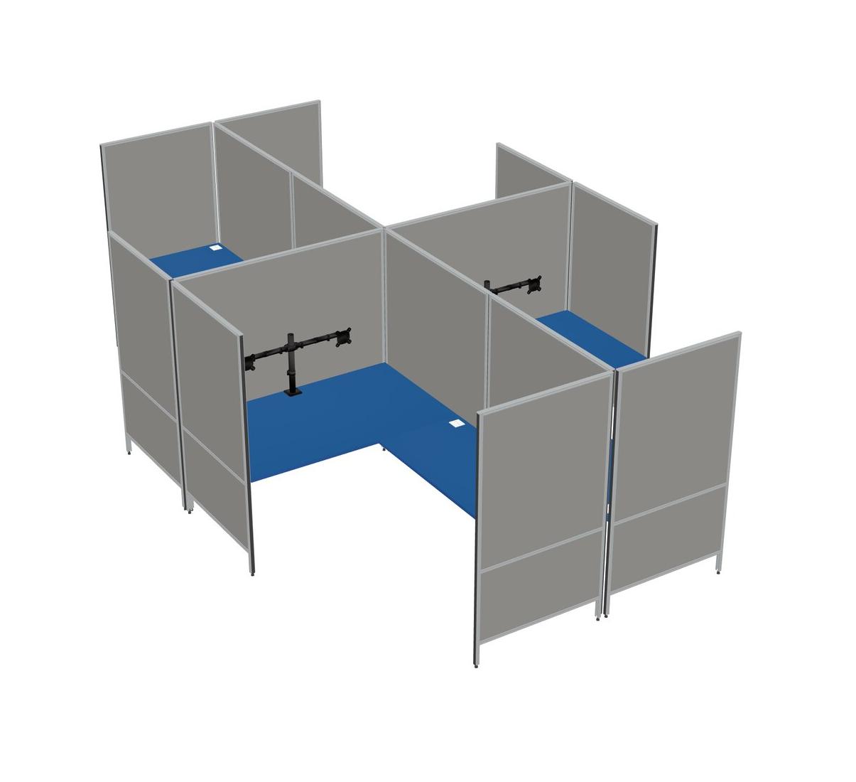 Prism Blue Modern Modular Quad L-Shaped Panel System + Monitor Arm (double Arms)