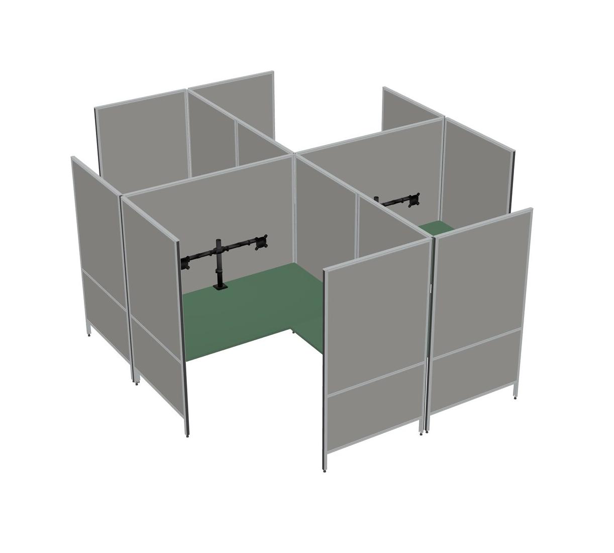 Green Modern Modular Quad L-Shaped Panel System + Monitor Arm (double Arms)
