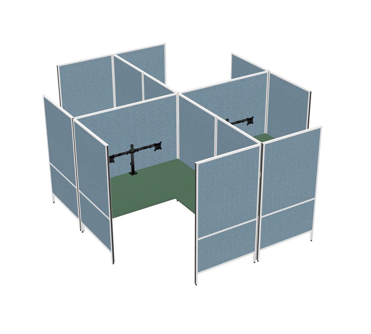 Green Modern Modular Quad L-Shaped Panel System + Monitor Arm (double Arms)