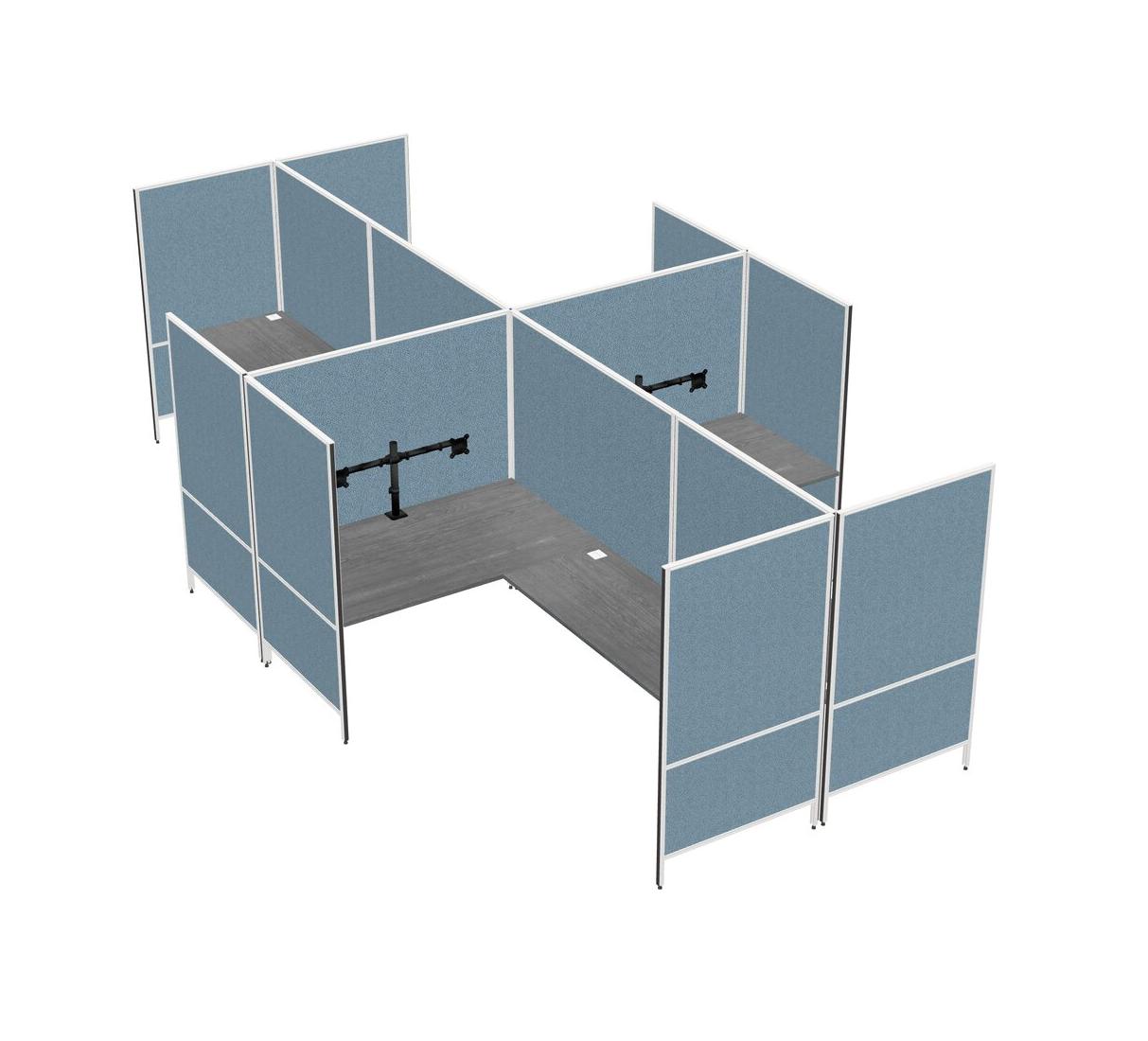 Grey Modern Modular Quad L-Shaped Panel System + Monitor Arm (double Arms)
