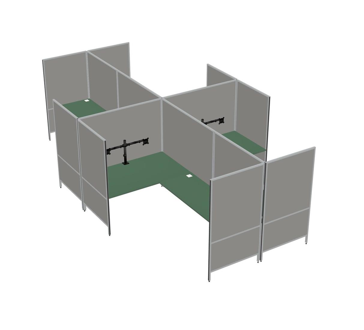 Green Modern Modular Quad L-Shaped Panel System + Monitor Arm (double Arms)