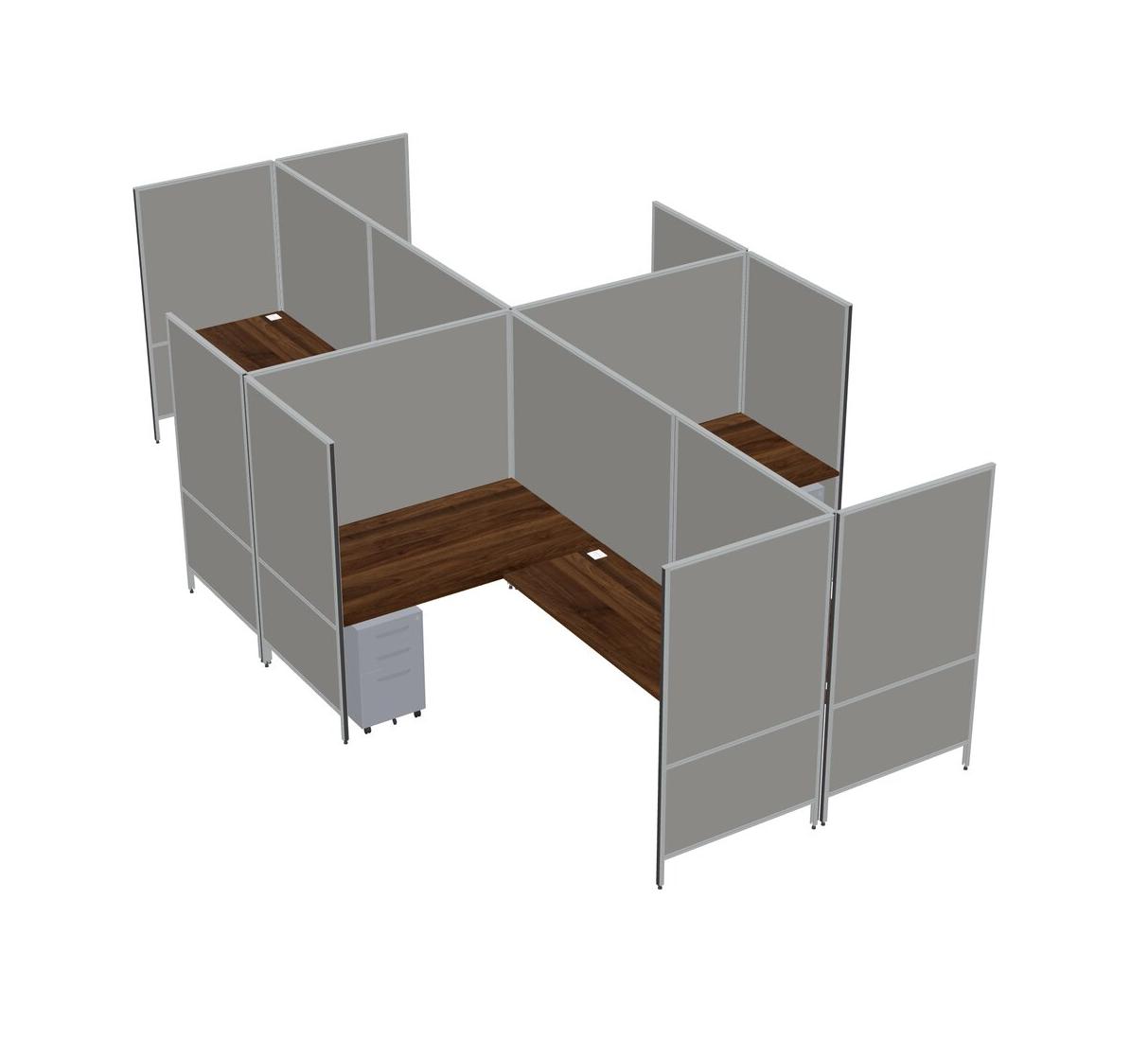 Columbia Walnut Modern Modular Quad L-Shaped Panel System + Metal Mobile Drawers