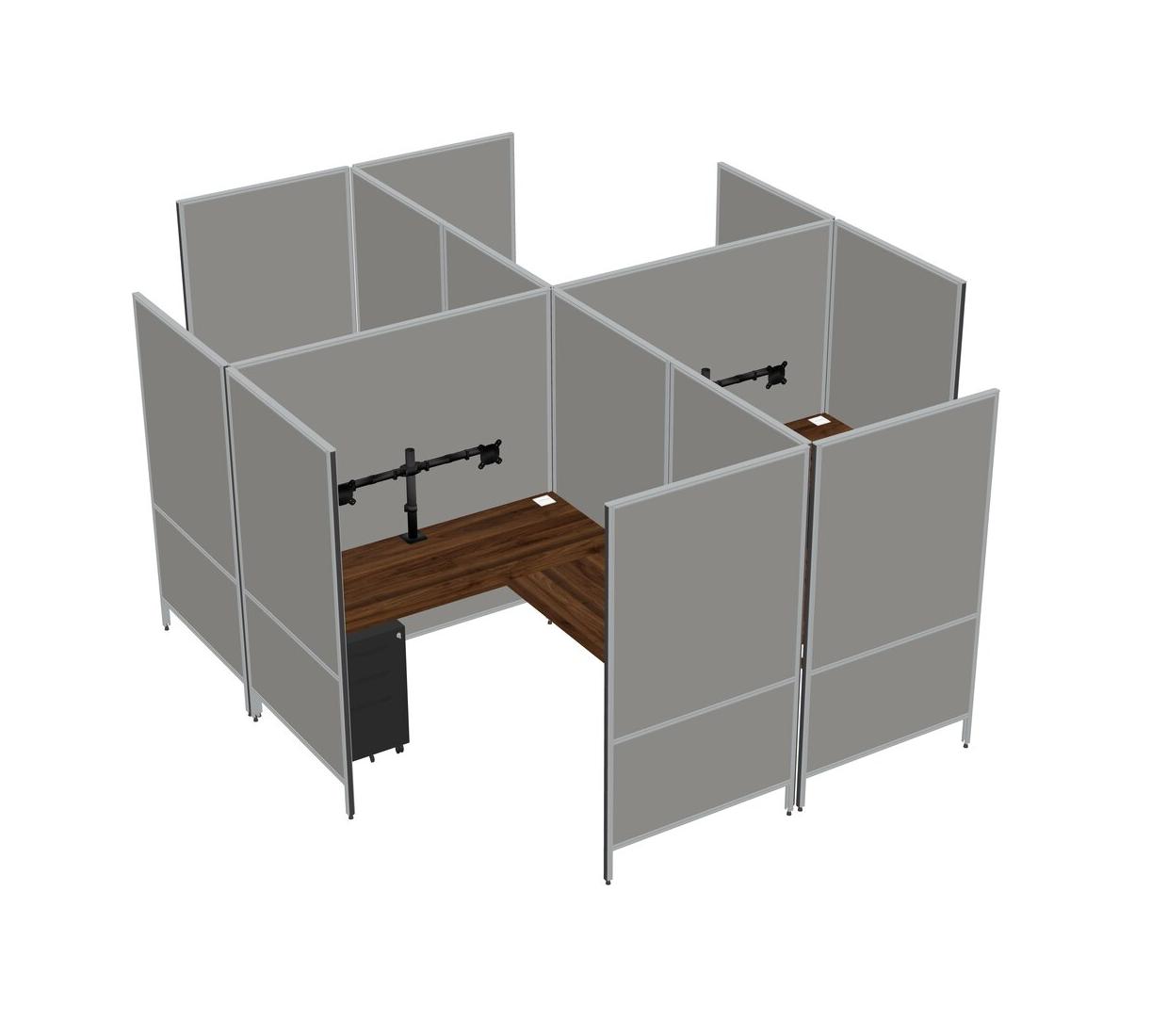 Columbia Walnut Modern Modular Quad L-Shaped Panel System + Metal Mobile Drawers + Monitor Arm (double Arms)