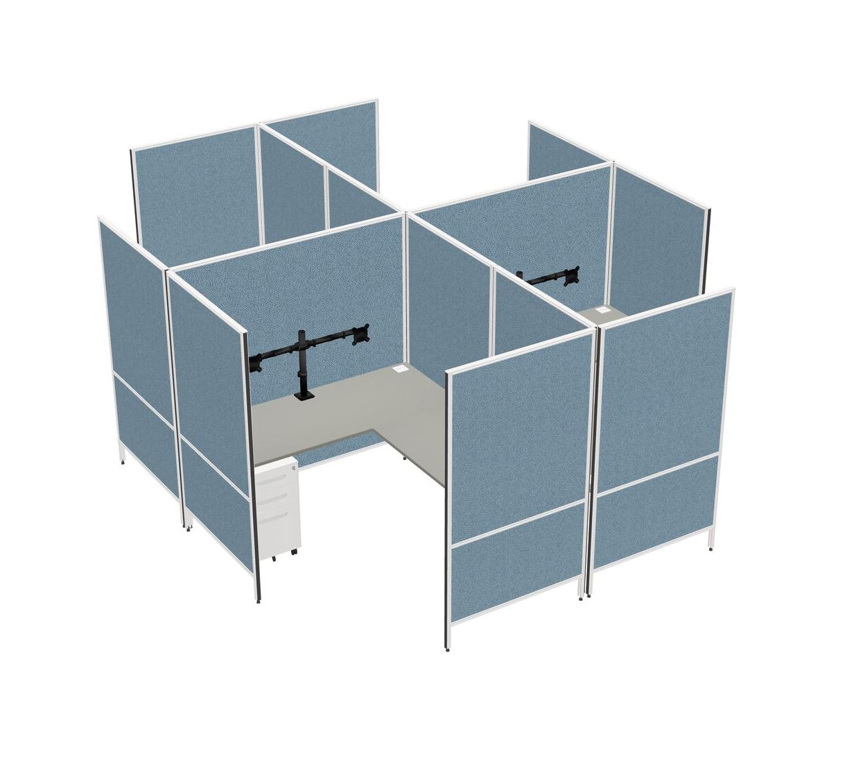 Grey Shadows Modern Modular Quad L-Shaped Panel System + Metal Mobile Drawers + Monitor Arm (double Arms)