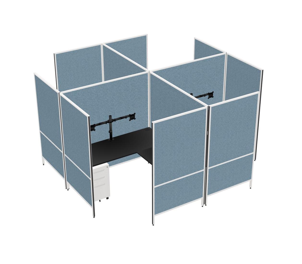 Black Modern Modular Quad L-Shaped Panel System + Metal Mobile Drawers + Monitor Arm (double Arms)