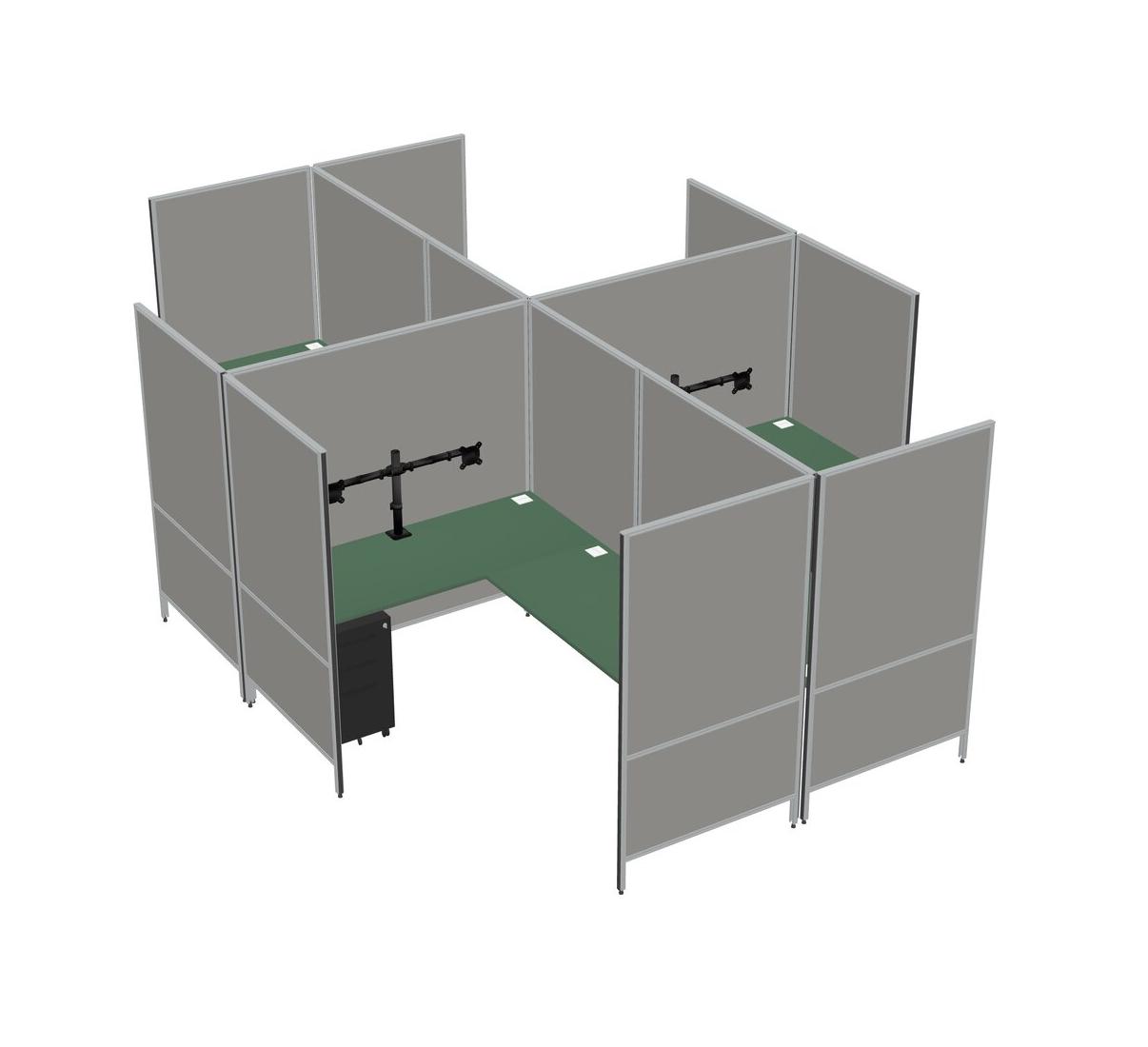 Green Modern Modular Quad L-Shaped Panel System + Metal Mobile Drawers + Monitor Arm (double Arms)