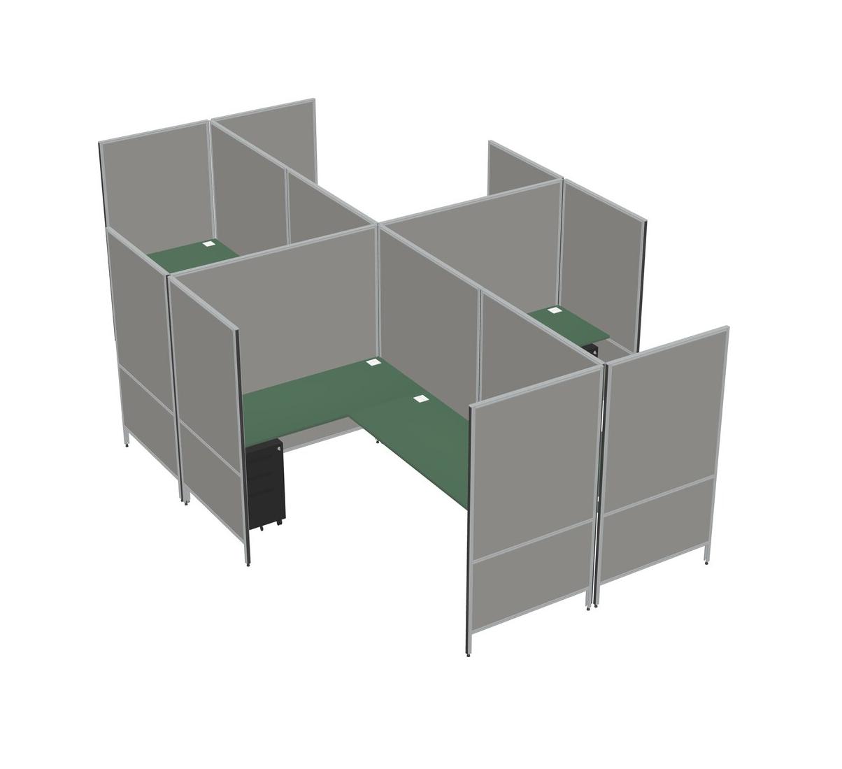 Green Modern Modular Quad L-Shaped Panel System + Metal Mobile Drawers