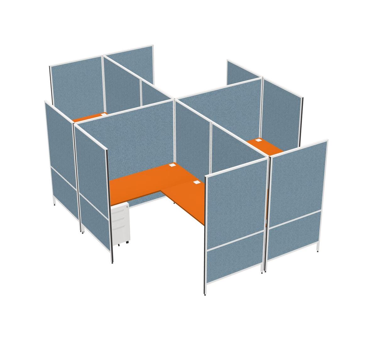 Orange Modern Modular Quad L-Shaped Panel System + Metal Mobile Drawers