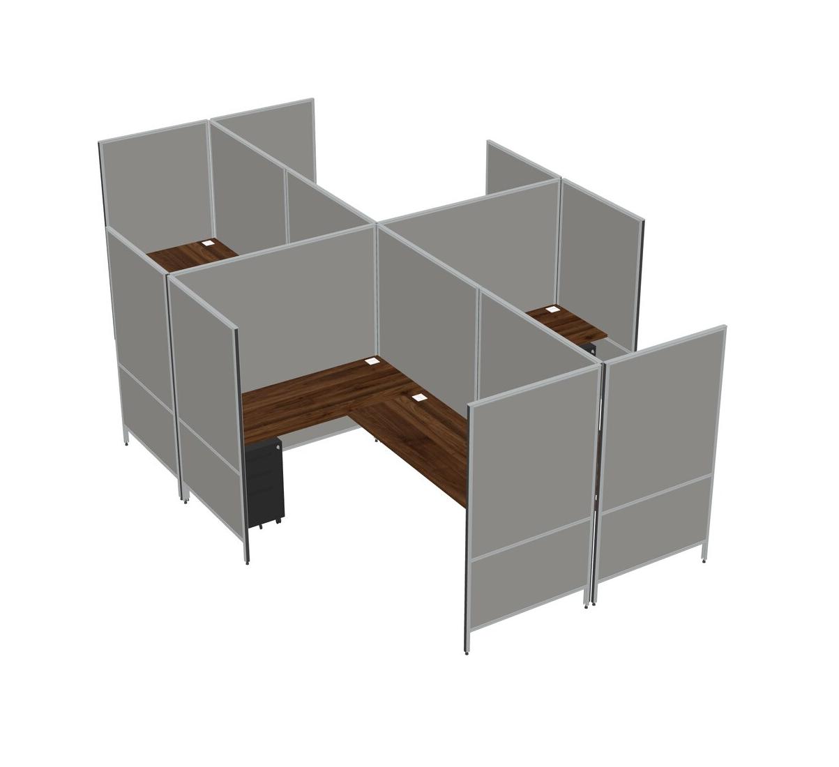 Columbia Walnut Modern Modular Quad L-Shaped Panel System + Metal Mobile Drawers