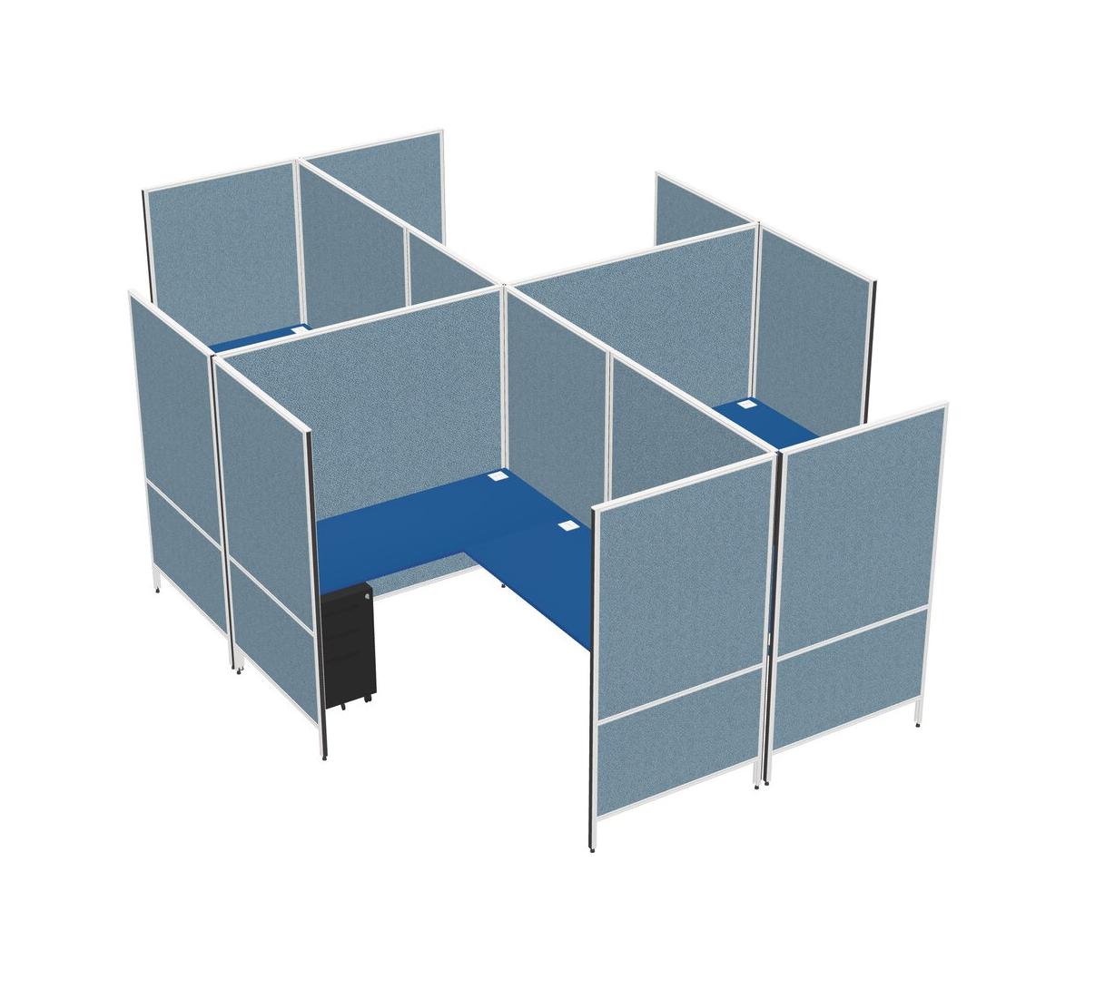 Prism Blue Modern Modular Quad L-Shaped Panel System + Metal Mobile Drawers