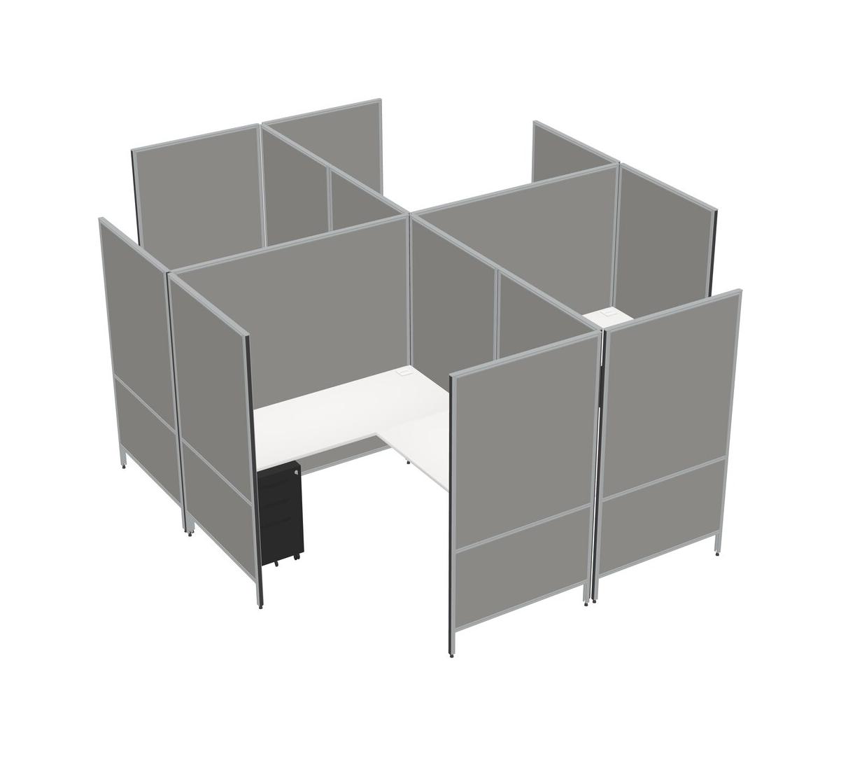 White Modern Modular Quad L-Shaped Panel System + Metal Mobile Drawers