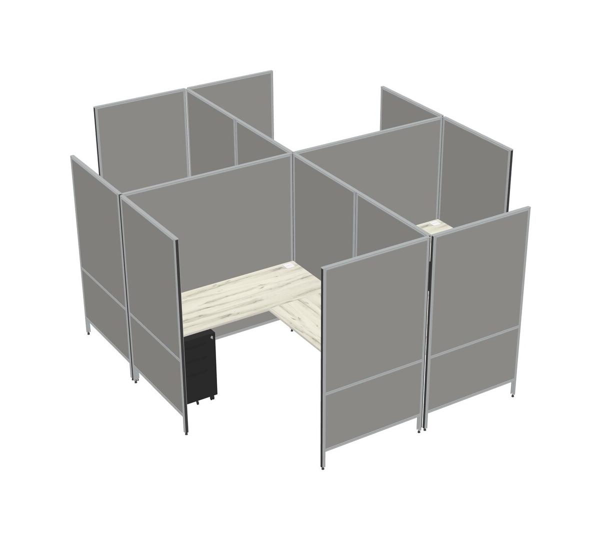 Heinne Holz Modern Modular Quad L-Shaped Panel System + Metal Mobile Drawers