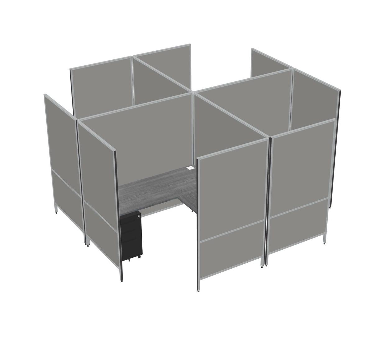 Grey Modern Modular Quad L-Shaped Panel System + Metal Mobile Drawers