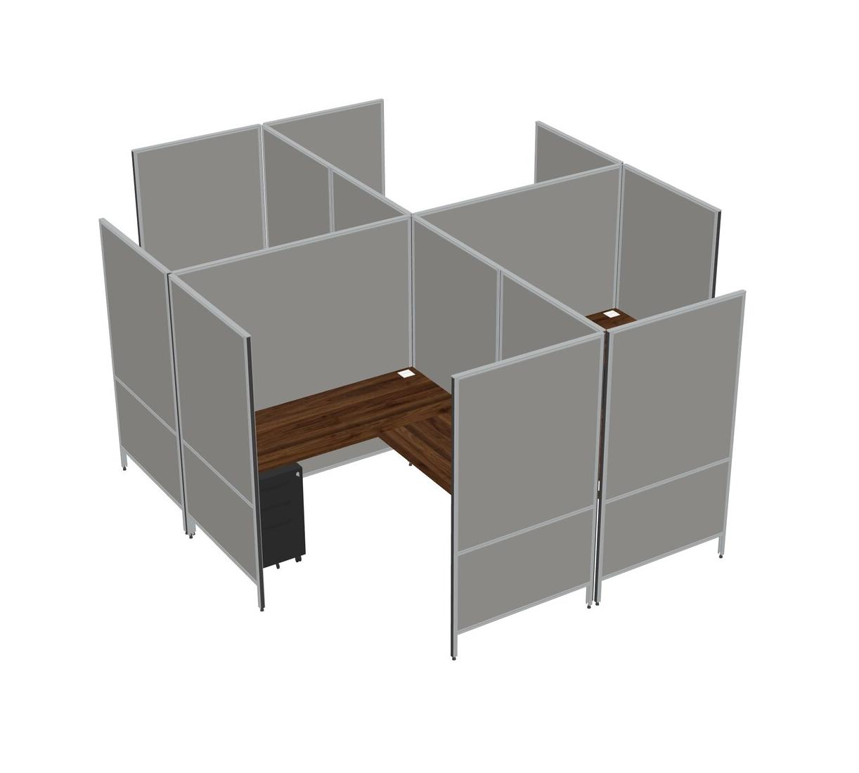 Columbia Walnut Modern Modular Quad L-Shaped Panel System + Metal Mobile Drawers