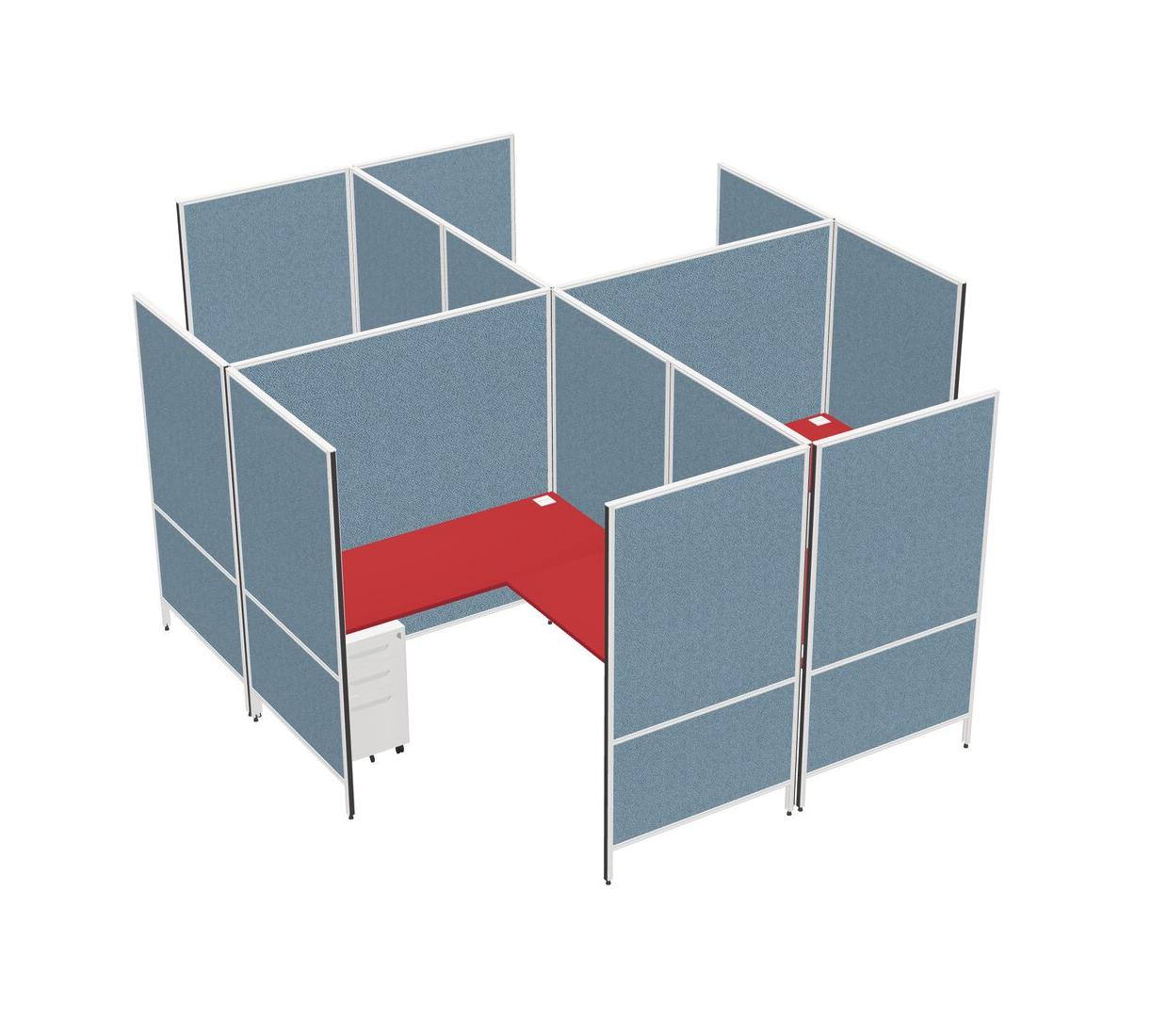 Prism Red Modern Modular Quad L-Shaped Panel System + Metal Mobile Drawers