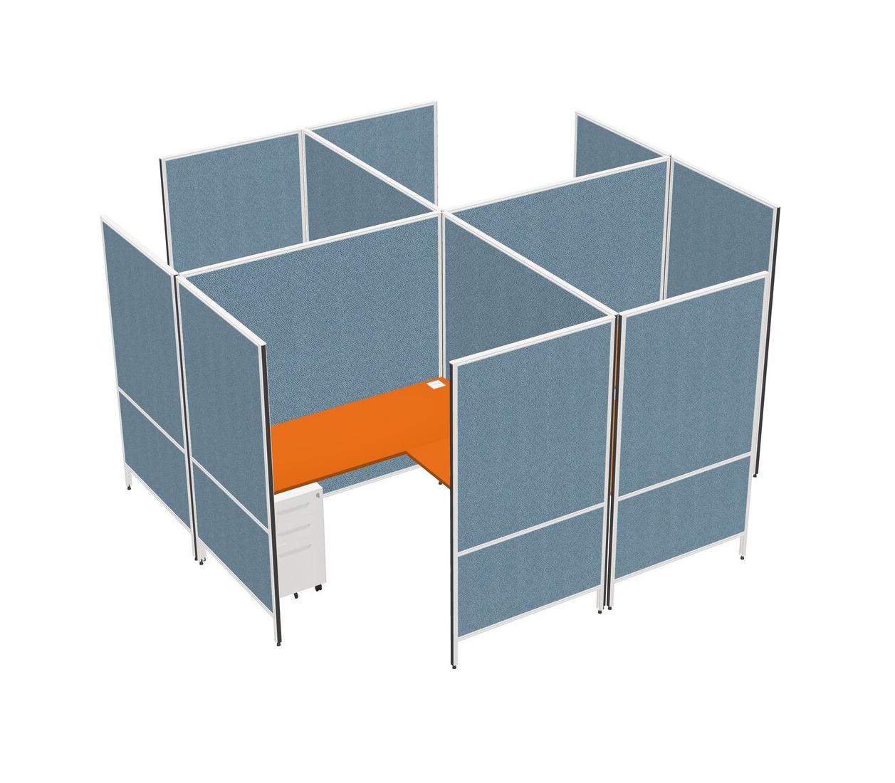 Orange Modern Modular Quad L-Shaped Panel System + Metal Mobile Drawers