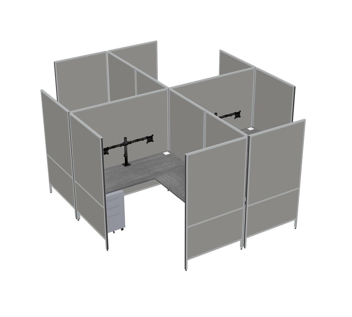 Grey Modern Modular Quad L-Shaped Panel System + Metal Mobile Drawers + Monitor Arm (double Arms)