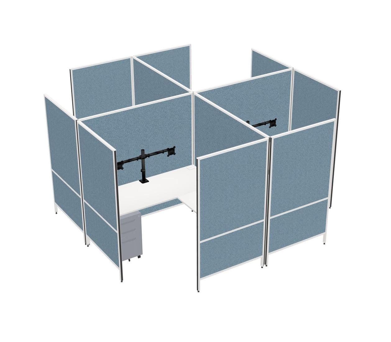 White Modern Modular Quad L-Shaped Panel System + Metal Mobile Drawers + Monitor Arm (double Arms)
