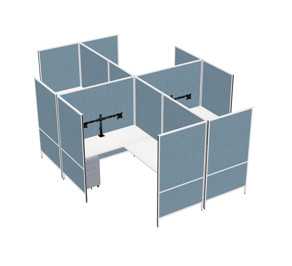 White Modern Modular Quad L-Shaped Panel System + Metal Mobile Drawers + Monitor Arm (double Arms)