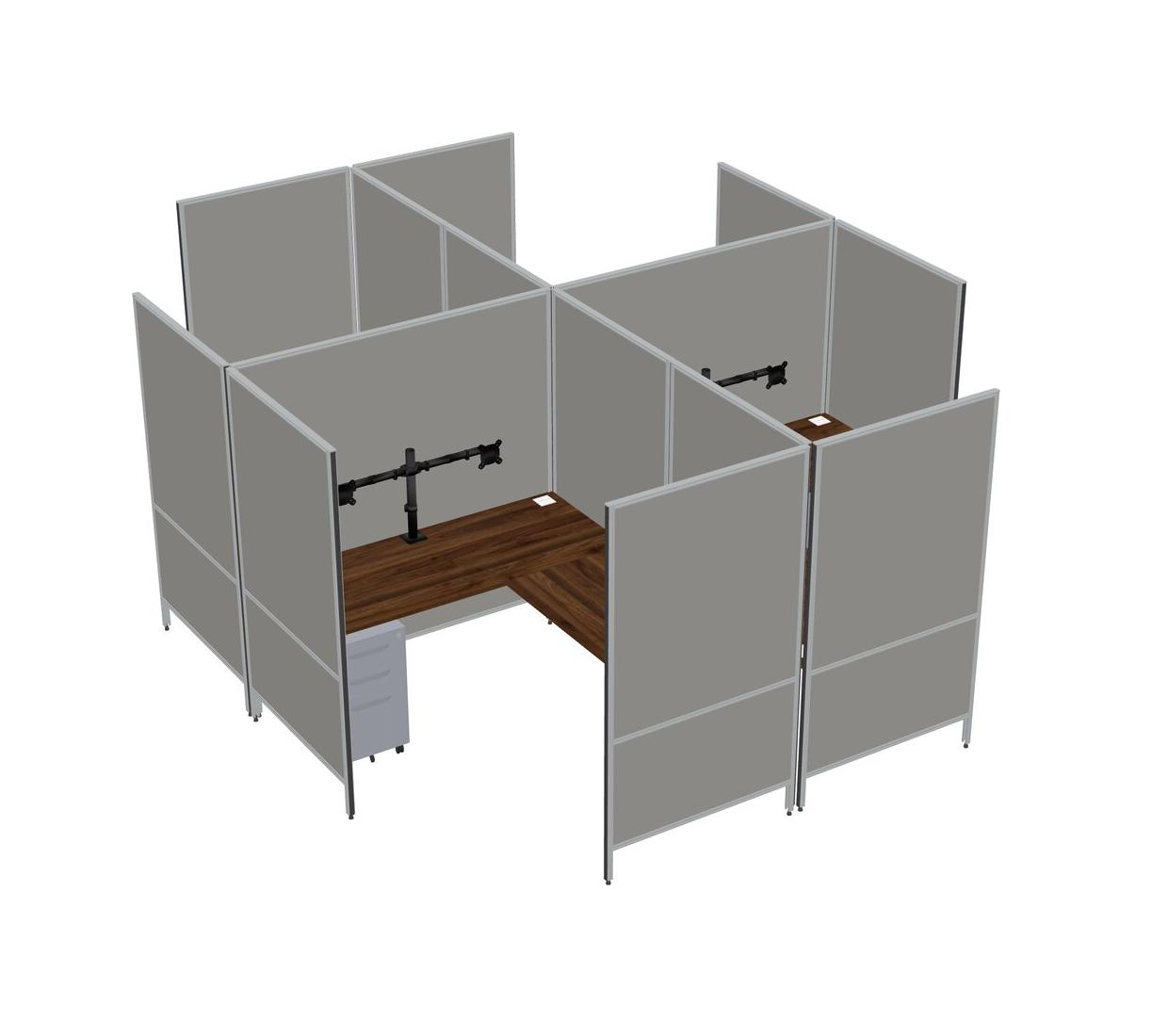 Columbia Walnut Modern Modular Quad L-Shaped Panel System + Metal Mobile Drawers + Monitor Arm (double Arms)