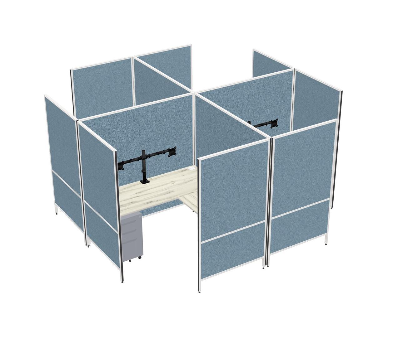 Heinne Holz Modern Modular Quad L-Shaped Panel System + Metal Mobile Drawers + Monitor Arm (double Arms)