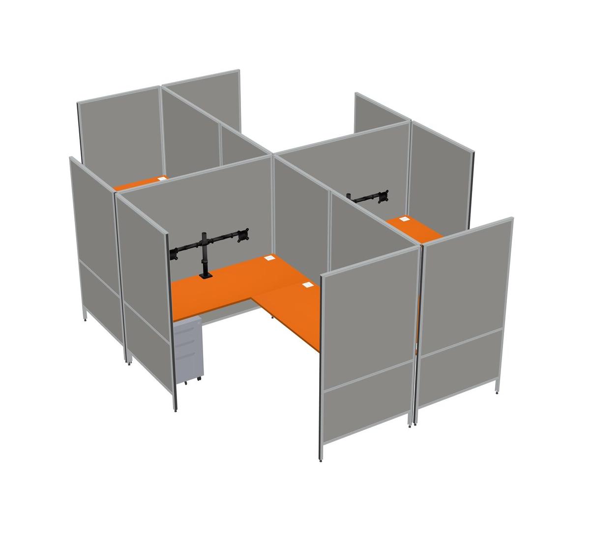 Orange Modern Modular Quad L-Shaped Panel System + Metal Mobile Drawers + Monitor Arm (double Arms)