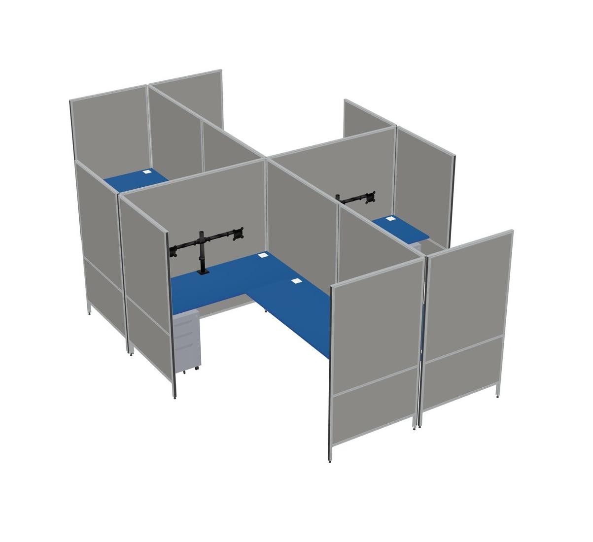 Prism Blue Modern Modular Quad L-Shaped Panel System + Metal Mobile Drawers + Monitor Arm (double Arms)